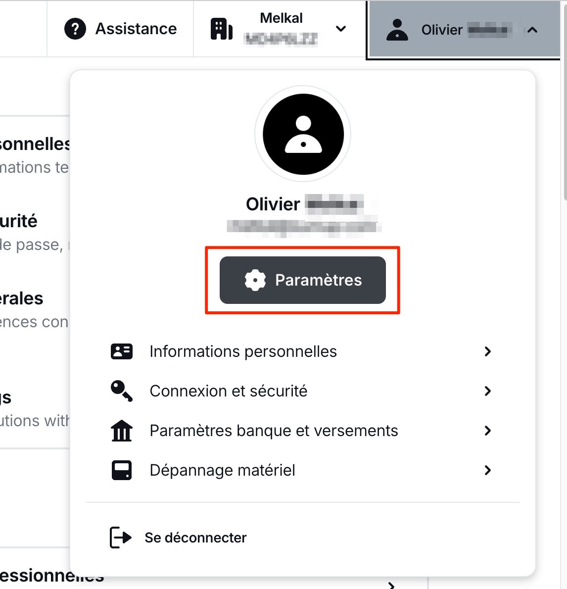 En haut à droite de votre tableau de bord, vous trouverez votre identifiant :