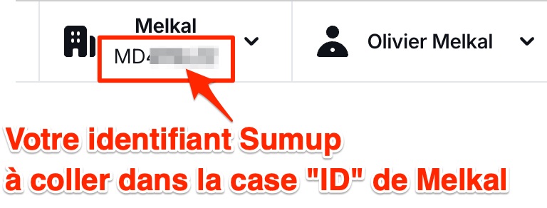 Enfin, copiez votre identifiant Sumup, que vous trouverez par exemple en haut de votre page de compte Sumup, et collez-le dans la case ID de Melkal.