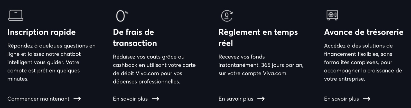 - Comme Viva est aussi un compte bancaire pro, vos encaissements CB arrivent directement sur ce compte en temps réel ! C'est-à-dire que si vous encaissez par exemple 100€ à 16h, ces 100€ sont alors instantanément disponibles à 16h00 si vous avez besoin de les dépenser. Il n'y a pas de décalage de trésorerie.